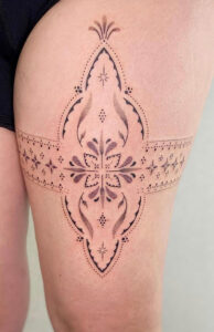 Edyta’s tattoos are beautifully balancing exquisite elegance with visual impact. Her designs are delicate yet commanding and effortlessly attract attention and admiration.Â