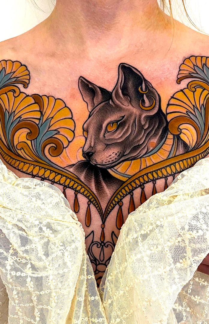 Beyond the Tattoo Studio, Vivi loves to travel (including to attend tattoo conventions), explores music festivals and live gigs and enjoys quiet moments with her two cats, Black and Sabbath.Â