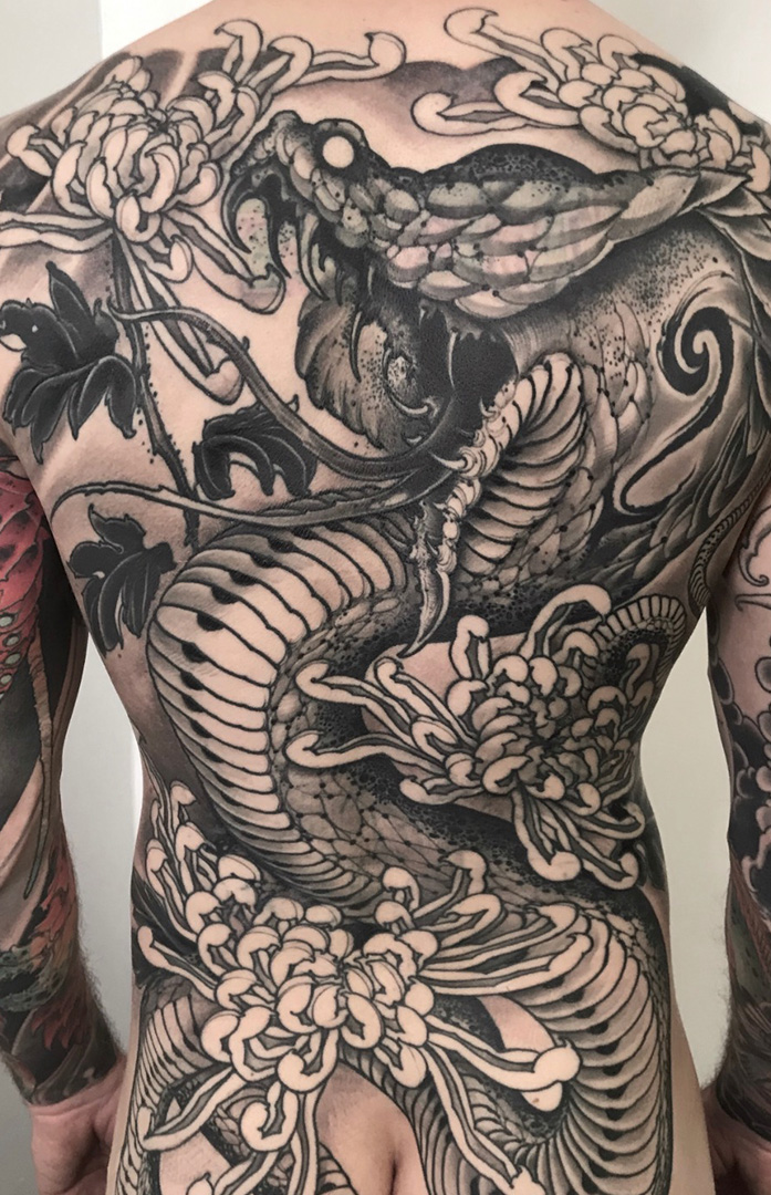 Joao is a renowned tattoo artist who is celebrated for his dark fantasy tattoos and oriental-inspired tattoo art. His signature designs include powerful symbols like snakes, skulls, chrysanthemums, and dragons into deeply meaningful artwork that explores the delicate boundary between life and death.Â
